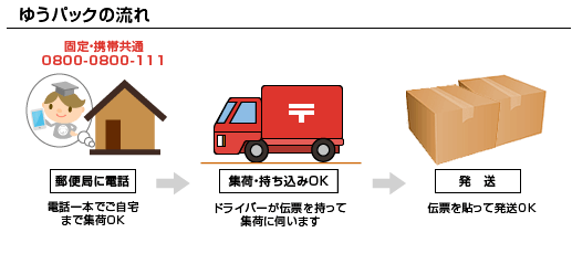 上記電話番号に電話していただければご希望の日時にご自宅まで集荷していただけます。